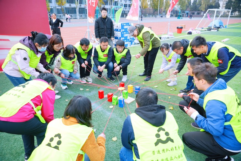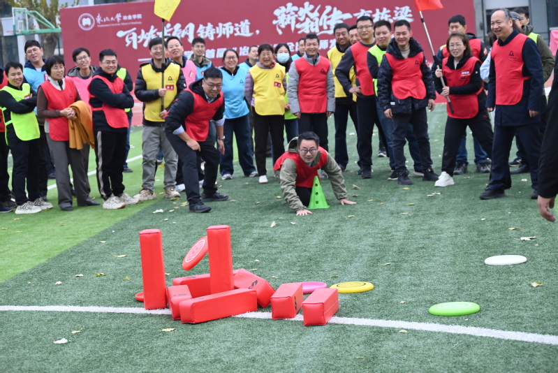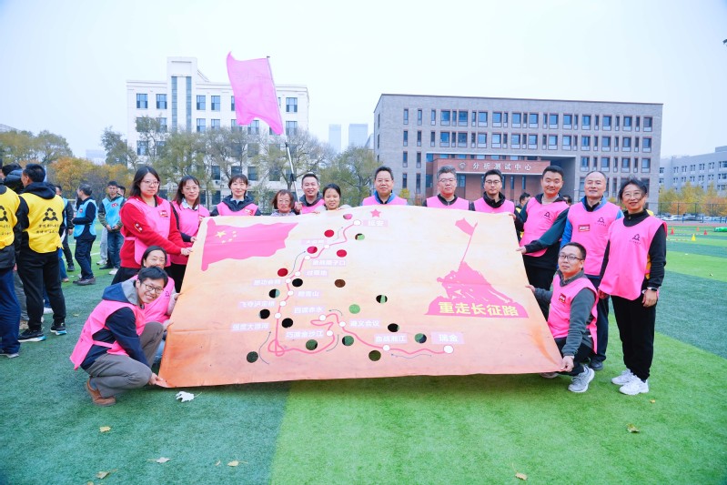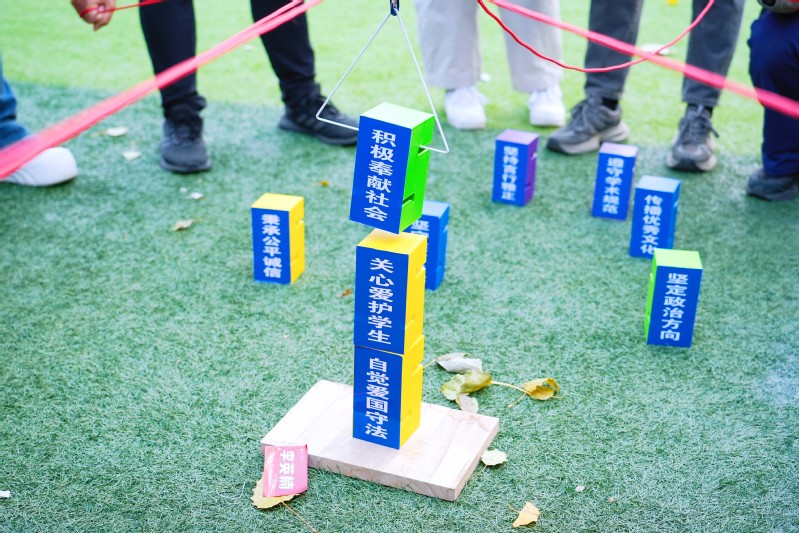 本次活动设置“点燃式破冰”“重走长征路”“同舟共济”“共筑师德之塔”“向阳飞驰”等五大赋能项目,兼顾了不同年龄段教职工的参与需求,将团队协作、师德教育与趣味竞技深度融合。教职工组建了“心有大我、至诚报国”“言为士则、行为世范”“启智润心、因材施教”“勤学笃行、求是创新”“乐教爱生、甘于奉献”“胸怀天下、以文化人”的教育家精神赋能队伍,通过系统性的培训、交流与竞技,在互动中增进了解,在挑战中锤炼意志,在协作中凝聚力量。