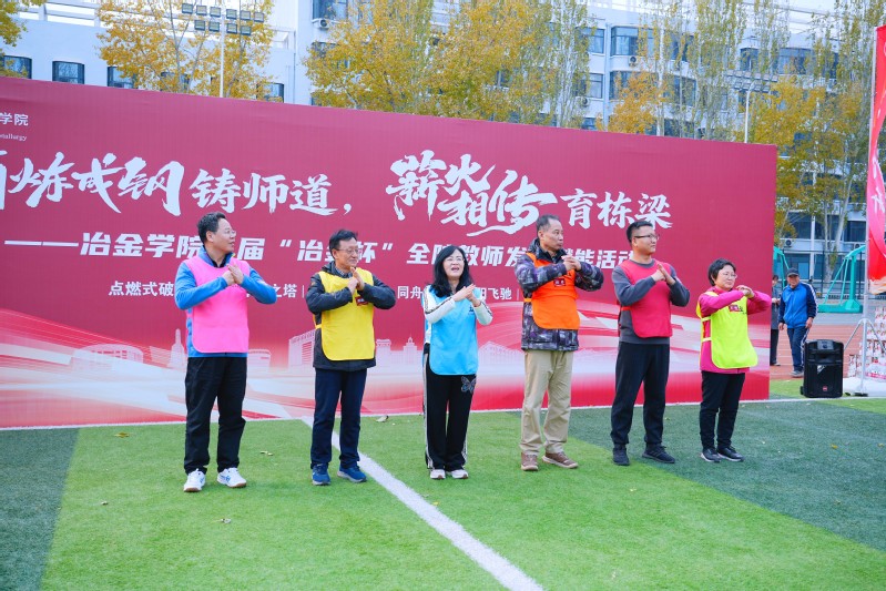 11月5日,冶金学院“百炼成钢铸师道,薪火相传育栋梁”——首届“冶金杯”全院教师发展赋能活动在五五体育场顺利举行。学校教师教学发展中心副主任、党委教师工作部副部长王梅、校工会副主席孟庆旺出席开幕式。学院领导班子成员、学科带头人等140余名教职工参加活动。