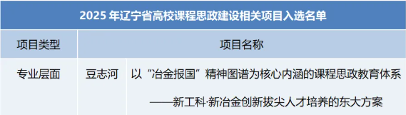 学校获评辽宁省课程思政建设先行高校,冶金学院冶金工程专业的“以‘冶金报国’精神图谱为核心内涵的课程思政教育体系——新工科·新冶金创新拔尖人才培养的东大方案”获评专业层面典型案例。