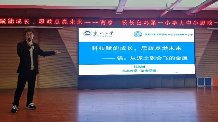 为深入贯彻全国高校“双带头人”教师党支部书记“强国行”专项行动的决策部署,2025年11月24日,冶金学院有色金属冶金第一党支部书记刘风国赴沈阳市和平区南京一校长白岛第一小学开展科普思政讲座。