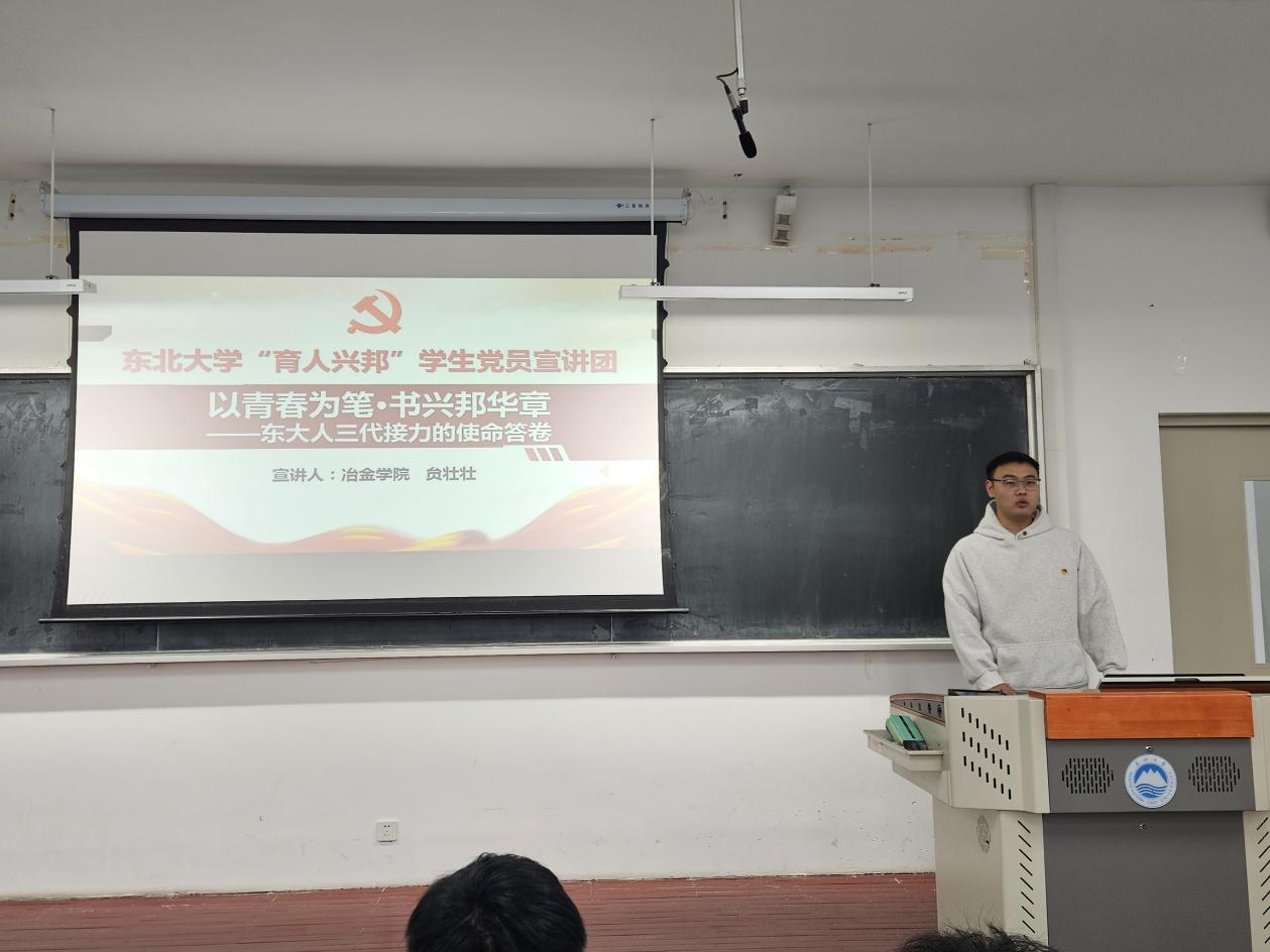 为落实学校党委关于新生党员教育相关工作安排,扎实开展冶金学院学生党员“熔铸工程”品牌工作,引导新生党员筑牢信仰之基、勇担时代使命,11月25日,冶金学院学生党总支邀请东北大学“育人兴邦”学生党员宣讲团走进2025级新生党员开展宣讲活动。冶金学院贠壮壮,理学院满超、徐静怡,机械工程与自动化学院樊宗昌作为宣讲团成员分别登台,以亲身经历和深刻感悟为新生党员上了一堂生动的“初心必修课”。