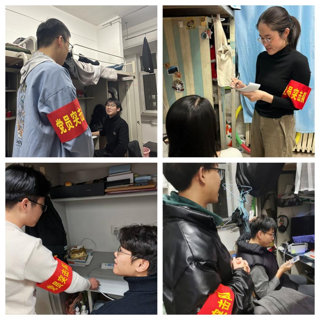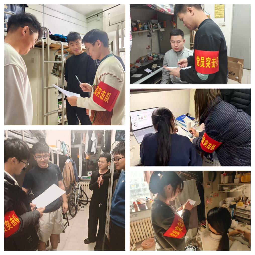 “我是党员,安全守护我先行”是由硕士生党支部支委和党员代表组成突击队,每月到班级的所有寝室走访1次,做好安全提醒,排查安全隐患,提高同学们的安全防范意识,助力校园安全建设,也作为党支部参与学生事务管理、党员联系服务群众的重要形式。