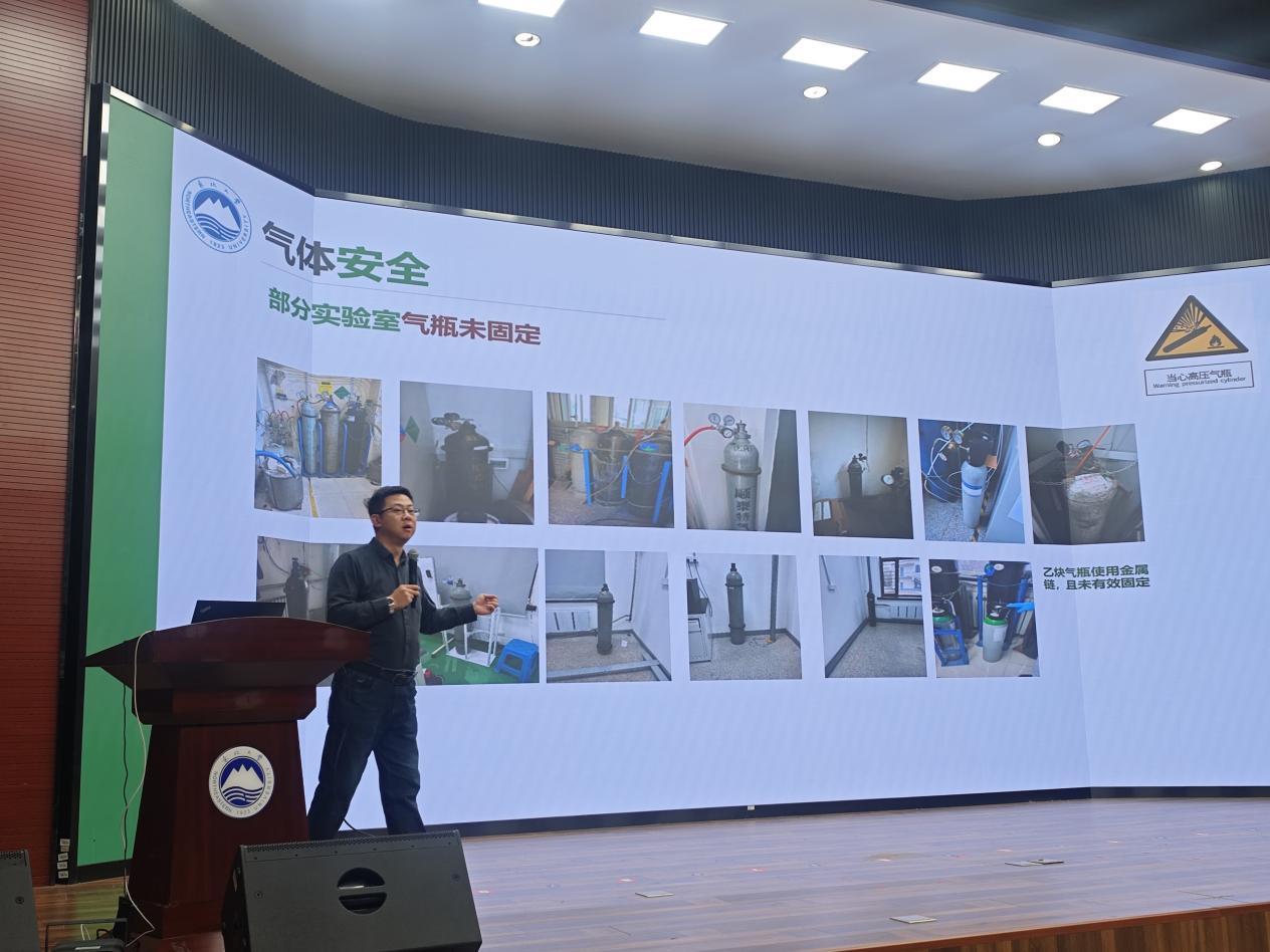 会上,北京阜安实验室 EHS 研究中心安全专家刘存结合在学院检查中发现的隐患,通过典型事故案例复盘,深入剖析危险化学品安全管理、气体钢瓶规范使用、基础安全操作要点、实验环境优化等核心问题,对标《高等学校实验室安全检查项目表(2025版)》提出科学整改措施,为学院后续安全工作开展提供了专业技术支撑。