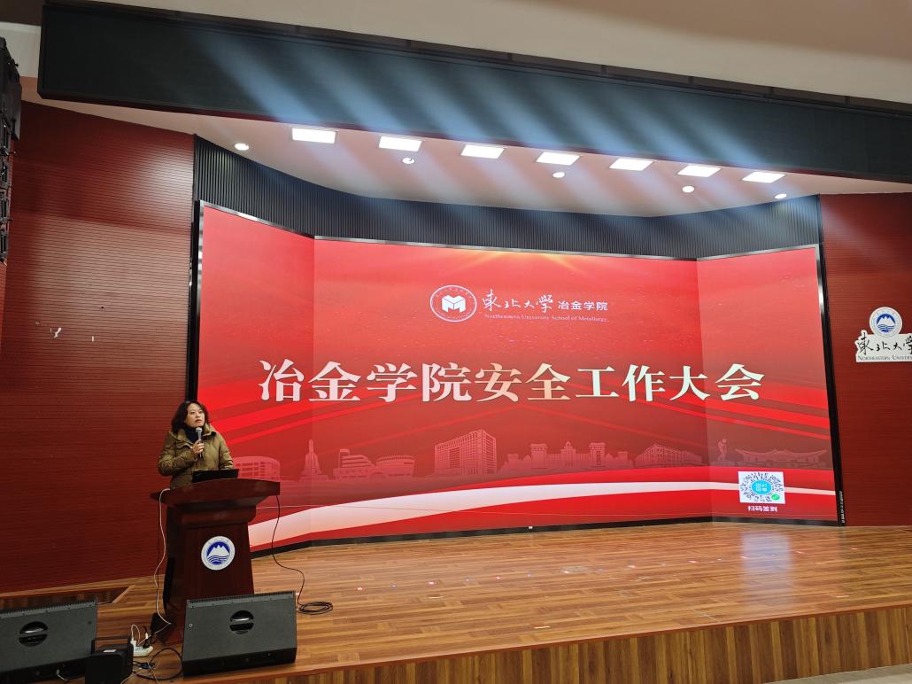 12 月 26 日,冶金学院在科学馆建龙报告厅召开安全工作会议。学院 146 名教职工参会,会议由学院副院长李伟主持,资产与实验室管理处副处长武威应邀出席,会议特邀北京阜安实验室 EHS 研究中心安全专家开展学院安全隐患反馈和治理办法培训。
