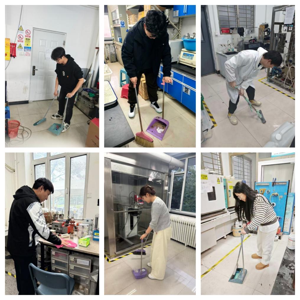 12月,研究生党员承担所在研究所的卫生、安全等工作,配合老师做好实验室“6S”建设和实验室清洁,立足日常学习工作发挥模范带头作用。同学们,大家一起行动起来吧!
