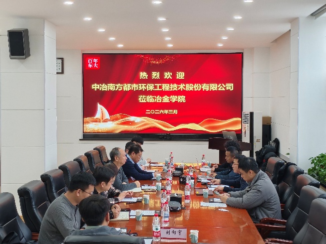 张耀伟代表冶金学院对中冶南方都市环保工程技术股份有限公司一行的来访表示热烈欢迎,并详细介绍了学院的发展概况、科研实力及人才培养情况。朱能闯介绍了中冶南方都市环保的业务布局、技术创新及发展规划。会上,中冶南方都市环保介绍了双方合作科研项目的执行情况,充分肯定了我院科研团队的技术实力,双方围绕在研项目推进计划以及未来进一步合作意向展开了深入座谈。