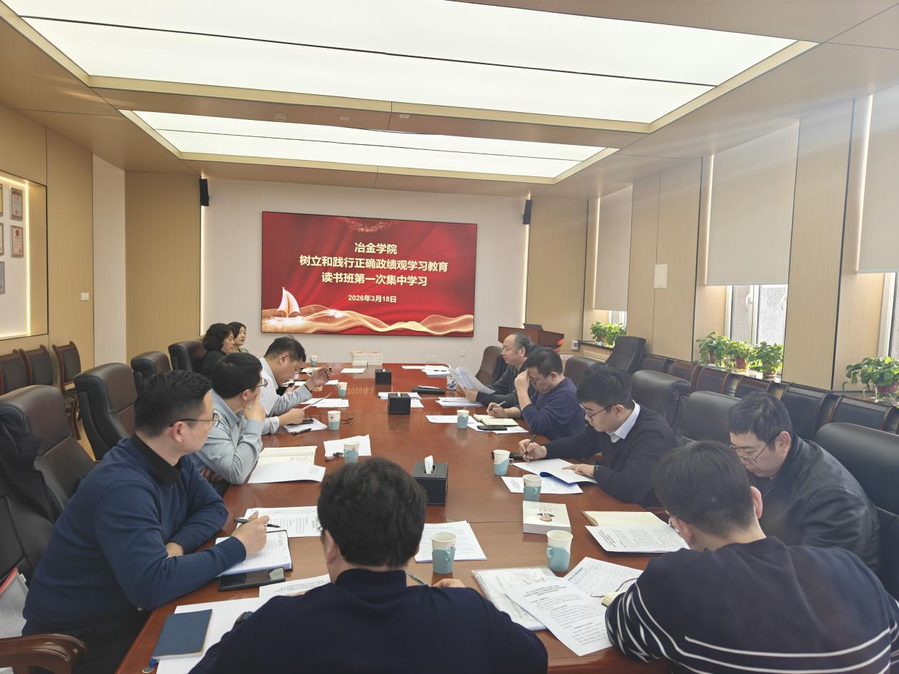 3月18日,冶金学院党委在冶金学馆311B会议室召开树立和践行正确政绩观学习教育读书班第一次集中学习会议,学院领导班子成员、党委委员参加本次学习。
