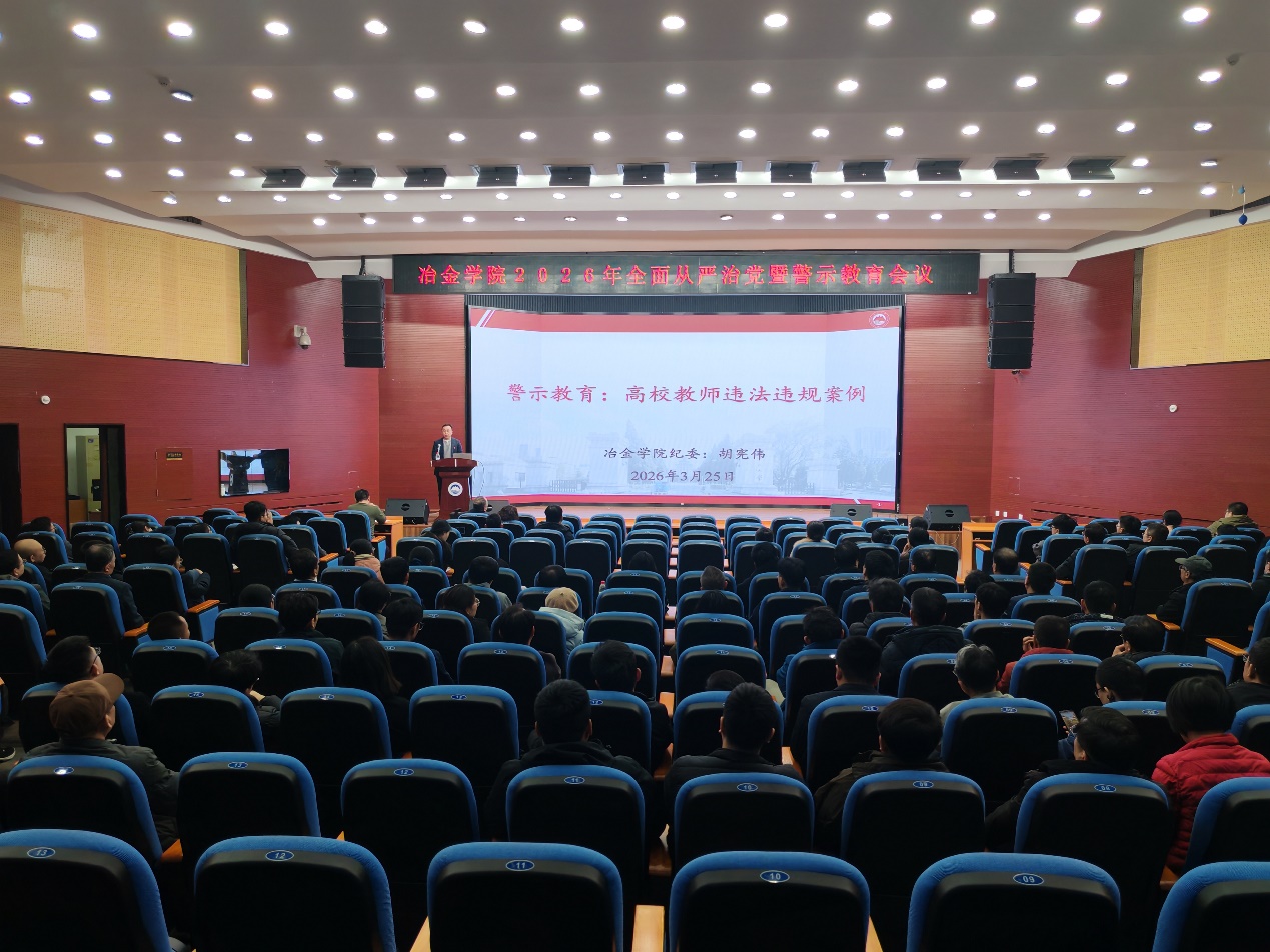 3月25日,冶金学院在科学馆建龙学术报告厅召开2026年全面从严治党暨警示教育会议,学院领导班子成员、党委委员及全体教职工参会,会议由学院院长豆志河主持。