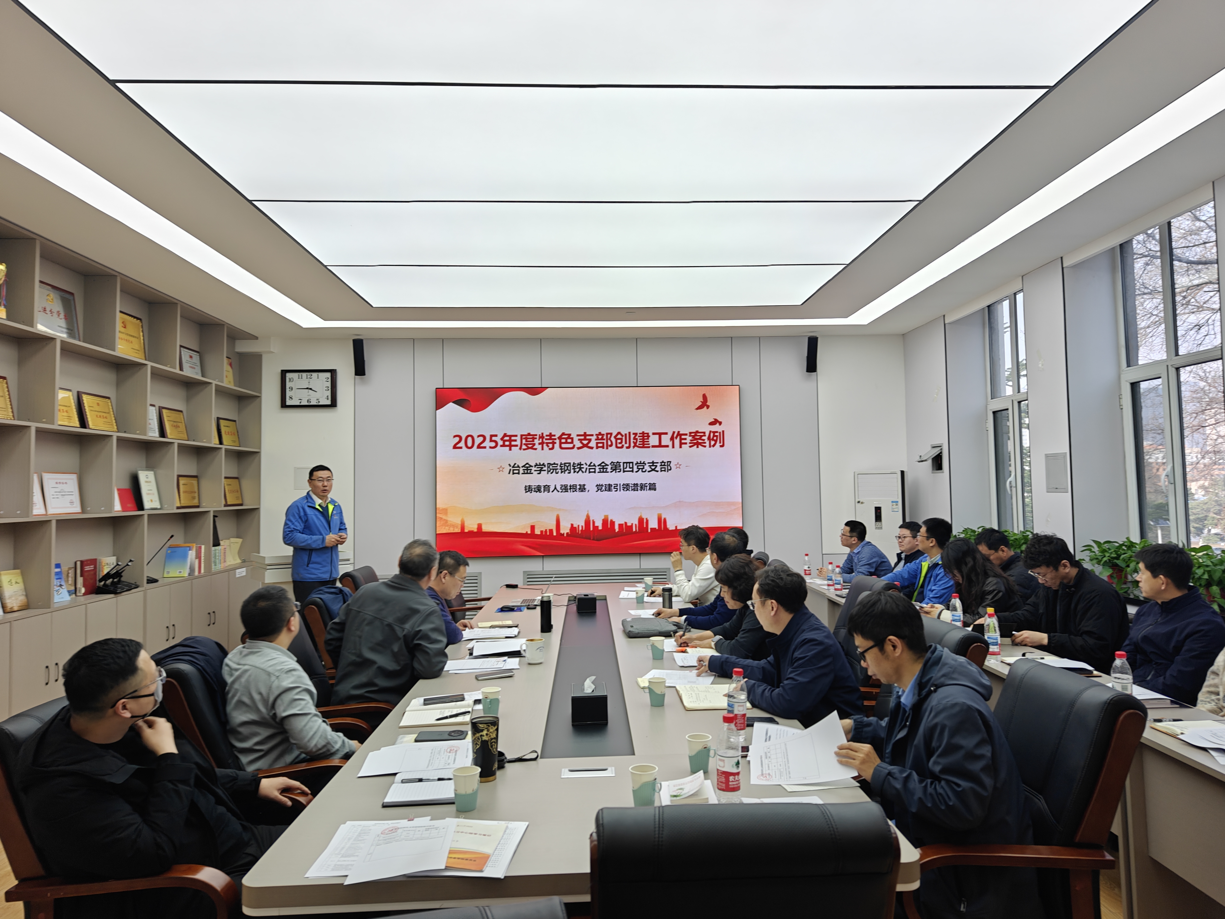 4月8日,冶金学院党委在冶金学馆311A会议室召开党支部书记例会暨2025年度特色党支部创建工作成果交流会,学院领导班子成员、党委委员、全体教工及博士生党支部书记参加会议,会议由学院党委书记张耀伟主持。